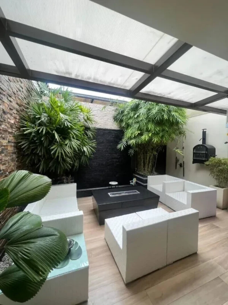 * Área de Bar en la terraza, se ha modificado como una segunda sala de estar, incluye mesa de granito con FOGATA y FUENTE LLORONA, con techo retráctil