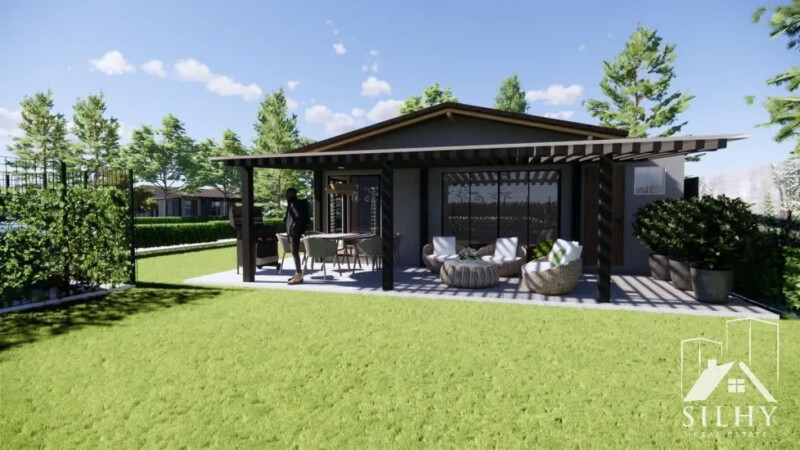 Cada Casa cuenta con un área construida de 147 m2 en una planta y consta de: sala, Comedor, Cocina, Sala familiar, 2 habitaciones cada una con Baño Completo una amplia y bella Terraza frente al jardín.