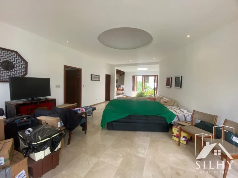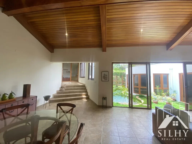 Si sueño es vivir dentro de la ciudad gozando de un agradable clima, del contacto con la naturaleza, dentro de una zona privada y con una plusvalía alta garantizada, esta bella, amplia, iluminada, ventilada y muy bien conservada casa tipo Quinta de una planta ubicada en el municipio de Nuevo Cuscatlán en el exclusivo Residencial Quintas de Santa Elena es para usted. Sus características son las siguientes: